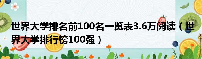 世界大学排名前100名一览表3.6万阅读(世界大学排行榜100强)