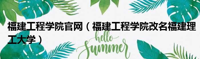 大家好,小东方来为大家解答以上的问题。福建工程学院官网,福建工程学院改名福建理工大学这个很多人还不知道,现在让我们一起来看看吧!