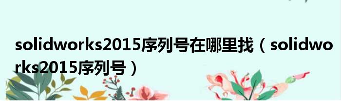 solidworks2015序列号在哪里找(solidworks2015序列号)