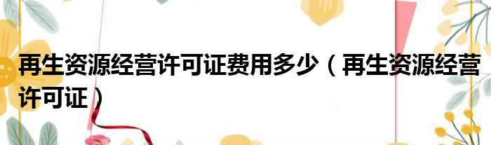 再生资源经营许可证费用多少(再生资源经营许可证)