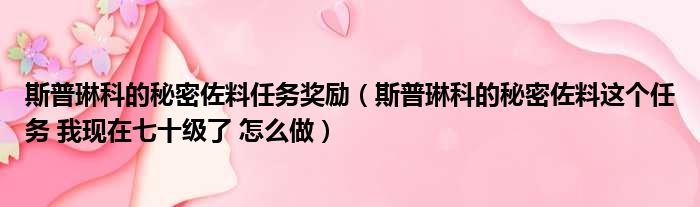 斯普琳科的秘密佐料任务奖励(斯普琳科的秘密佐料这个任务 我现在七十级了 怎么做)