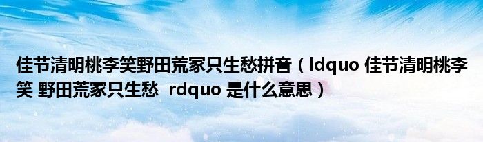 佳节清明桃李笑野田荒冢只生愁拼音(ldquo 佳节清明桃李笑 野田荒冢只生愁 rdquo 是什么意思)