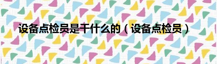 设备点检员是干什么的(设备点检员)