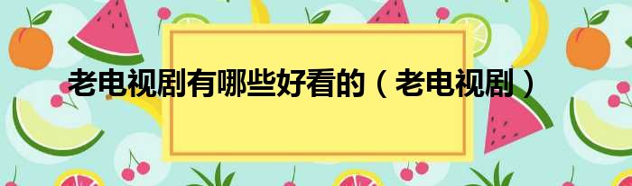 老电视剧有哪些好看的(老电视剧)
