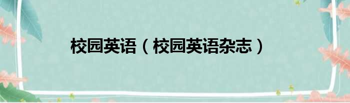 大家好,小东方来为大家解答以上的问题。校园英语,校园英语杂志这个很多人还不知道,现在让我们一起来看看吧!