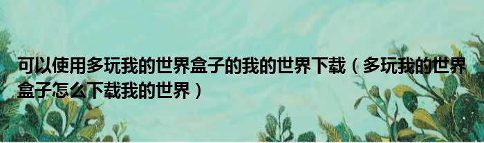 可以使用多玩我的世界盒子的我的世界下载(多玩我的世界盒子怎么下载我的世界)