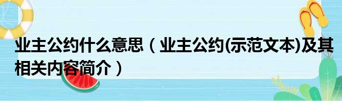业主公约什么意思(业主公约(示范文本)及其相关内容简介)
