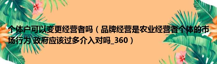 个体户可以变更经营者吗(品牌经营是农业经营者个体的市场行为 政府应该过多介入对吗_360)