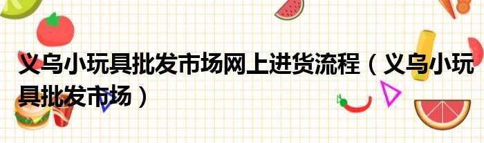 义乌小玩具批发市场网上进货流程(义乌小玩具批发市场)