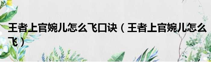 王者上官婉儿怎么飞口诀(王者上官婉儿怎么飞)