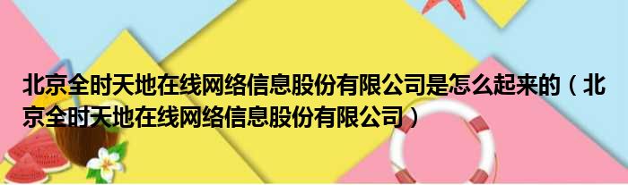 北京全时天地在线网络信息股份有限公司是怎么起来的(北京全时天地在线网络信息股份有限公司)