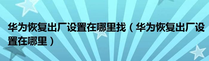 华为恢复出厂设置在哪里找(华为恢复出厂设置在哪里)