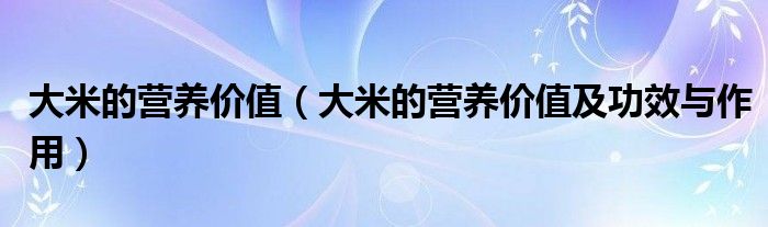 1、大米营养价值和营养素含量:大米中各种营养素含量虽不是很高,但因人们食用量大,故其也具有很高营养功效,是补充营养素的基础食物;米粥具有补脾、和胃、清肺功效。