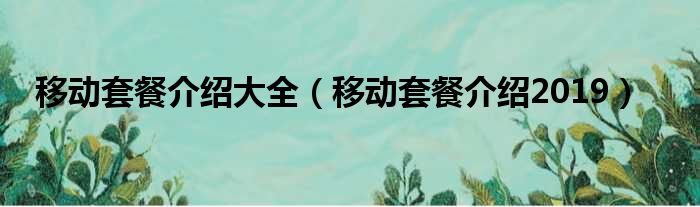 大家好,小东方来为大家解答以上的问题。移动套餐介绍大全,移动套餐介绍2019这个很多人还不知道,现在让我们一起来看看吧!