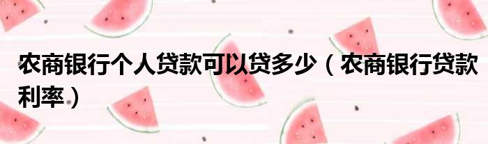 农商银行个人贷款可以贷多少(农商银行贷款利率)