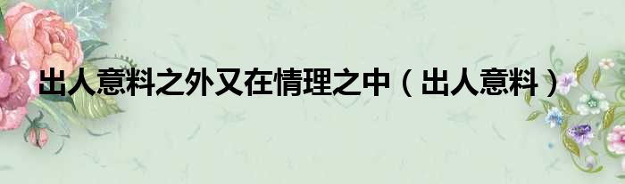 大家好,小东方来为大家解答以上的问题。出人意料之外又在情理之中,出人意料这个很多人还不知道,现在让我们一起来看看吧!