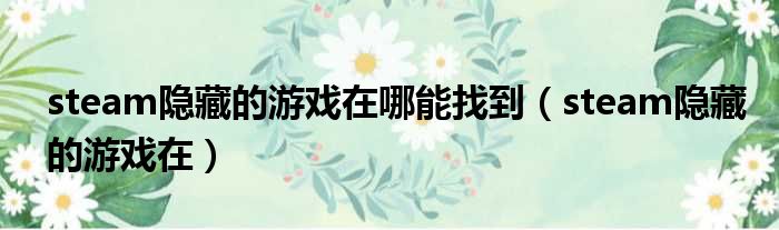 steam隐藏的游戏在哪能找到(steam隐藏的游戏在)
