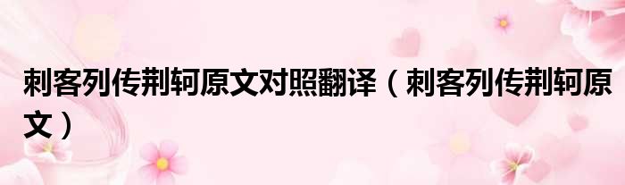 刺客列传荆轲原文对照翻译(刺客列传荆轲原文)