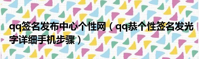 qq签名发布中心个性网(qq恭个性签名发光字详细手机步骤)