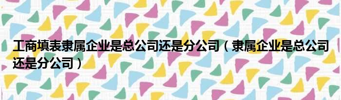 工商填表隶属企业是总公司还是分公司(隶属企业是总公司还是分公司)