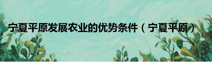 大家好,小东方来为大家解答以上的问题。宁夏平原发展农业的优势条件,宁夏平原这个很多人还不知道,现在让我们一起来看看吧!