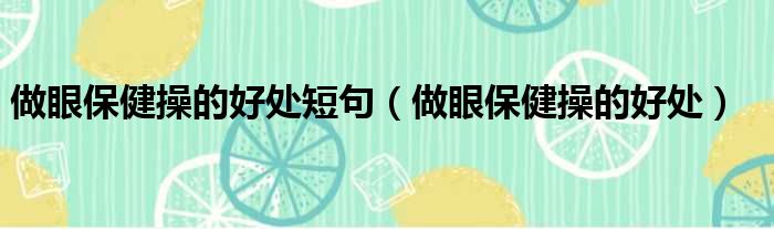 大家好,小东方来为大家解答以上的问题。做眼保健操的好处短句,做眼保健操的好处这个很多人还不知道,现在让我们一起来看看吧!