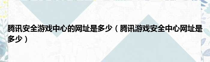 腾讯安全游戏中心的网址是多少(腾讯游戏安全中心网址是多少)