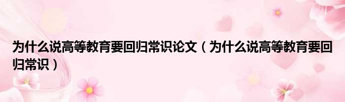 为什么说高等教育要回归常识论文(为什么说高等教育要回归常识)