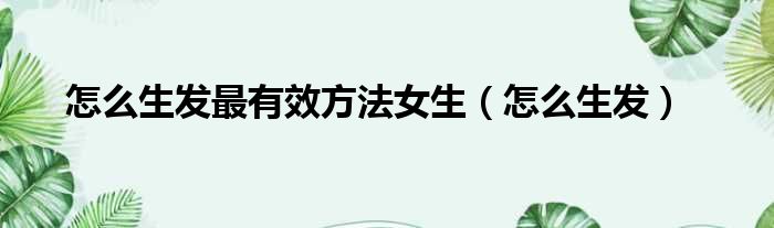 大家好,小东方来为大家解答以上的问题。怎么生发最有效方法女生,怎么生发这个很多人还不知道,现在让我们一起来看看吧!