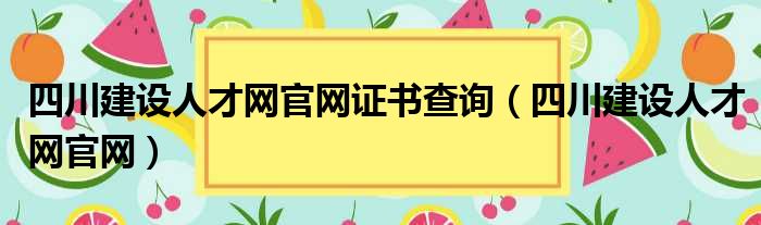 四川建设人才网官网证书查询(四川建设人才网官网)