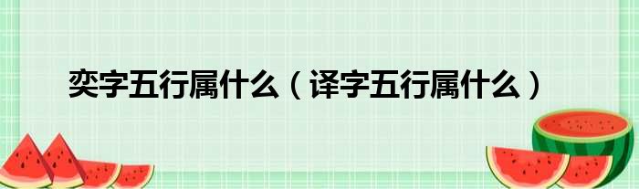 奕字五行属什么(译字五行属什么)