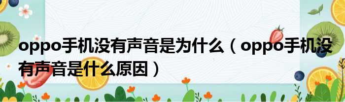 oppo手机没有声音是为什么(oppo手机没有声音是什么原因)