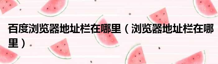 百度浏览器地址栏在哪里(浏览器地址栏在哪里)