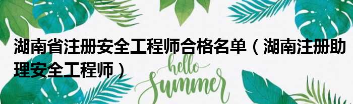 湖南省注册安全工程师合格名单(湖南注册助理安全工程师)