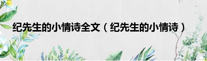 大家好,小东方来为大家解答以上的问题。纪先生的小情诗全文,纪先生的小情诗这个很多人还不知道,现在让我们一起来看看吧!