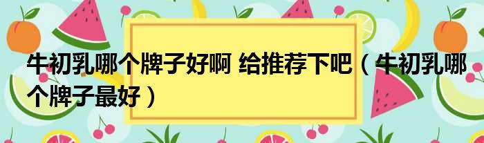 牛初乳哪个牌子好啊 给推荐下吧(牛初乳哪个牌子最好)