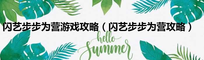 闪艺步步为营游戏攻略(闪艺步步为营攻略)