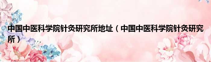 中国中医科学院针灸研究所地址(中国中医科学院针灸研究所)