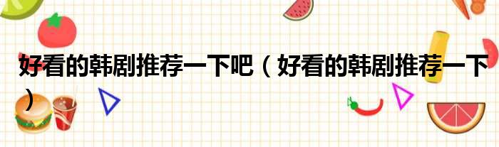 好看的韩剧推荐一下吧(好看的韩剧推荐一下)