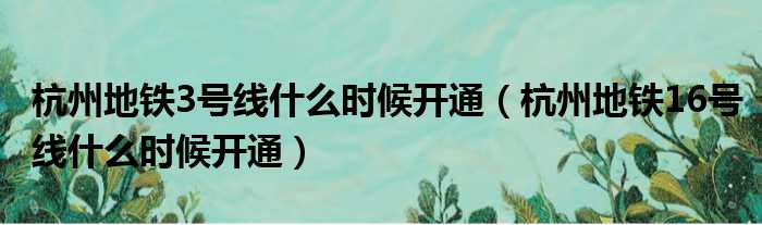 杭州地铁3号线什么时候开通(杭州地铁16号线什么时候开通)