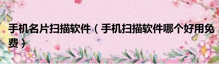 手机名片扫描软件(手机扫描软件哪个好用免费)