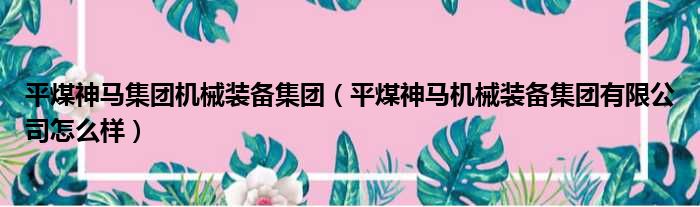 平煤神马集团机械装备集团(平煤神马机械装备集团有限公司怎么样)