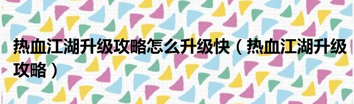 热血江湖升级攻略怎么升级快(热血江湖升级攻略)