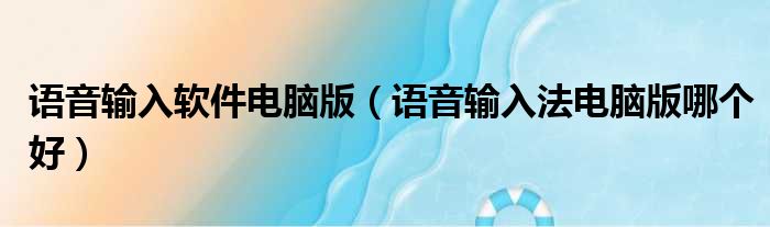 语音输入软件电脑版(语音输入法电脑版哪个好)