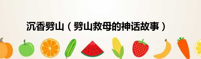 沉香劈山(劈山救母的神话故事)