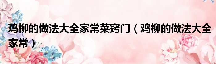 鸡柳的做法大全家常菜窍门(鸡柳的做法大全家常)