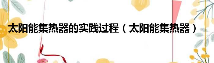 大家好,小东方来为大家解答以上的问题。太阳能集热器的实践过程,太阳能集热器这个很多人还不知道,现在让我们一起来看看吧!