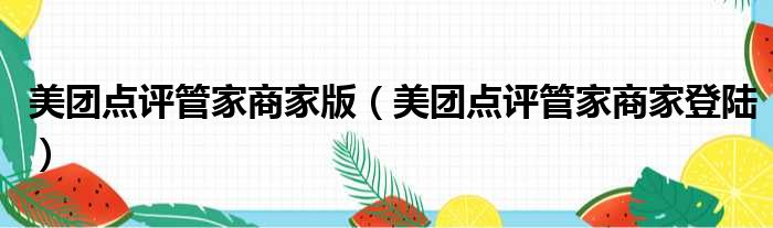 大家好,小东方来为大家解答以上的问题。美团点评管家商家版,美团点评管家商家登陆这个很多人还不知道,现在让我们一起来看看吧!