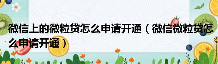 微信上的微粒贷怎么申请开通(微信微粒贷怎么申请开通)