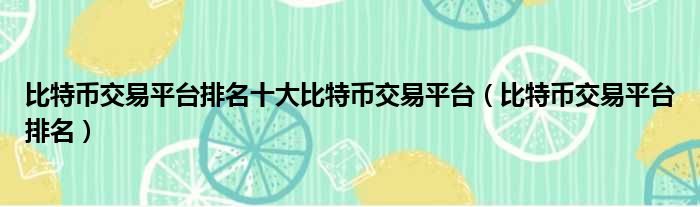 比特币交易平台排名十大比特币交易平台(比特币交易平台排名)